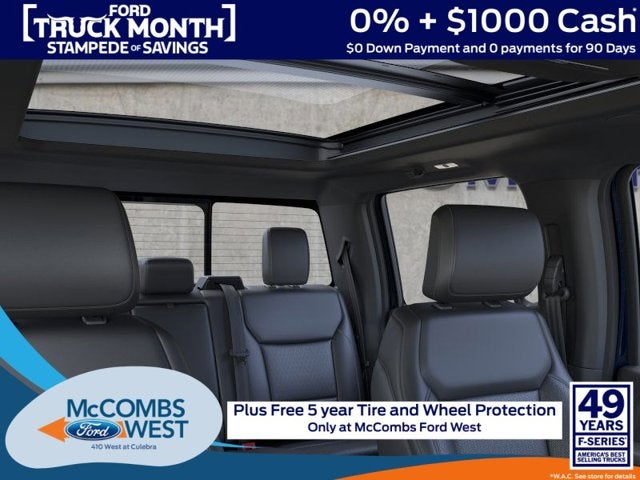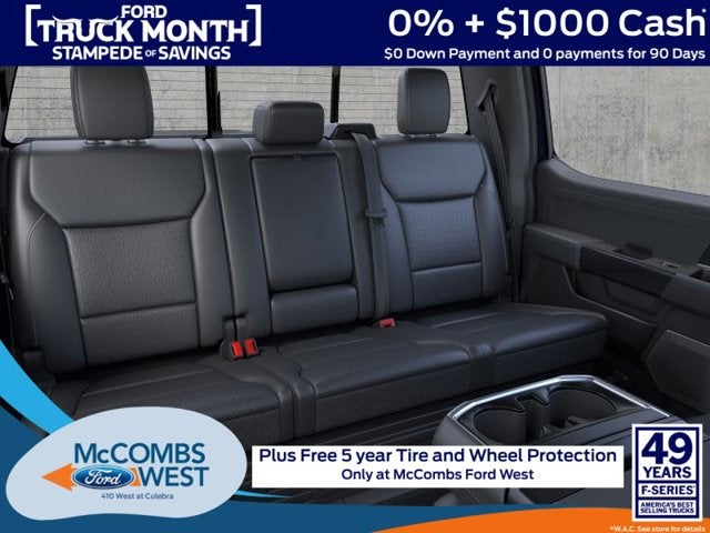 MOBILE OFFICE PACKAGE -inc: Wireless Charging, Partitioned Lockable Rear Storage, Console Worksurface, LARIAT BLACK APPEARANCE PACKAGE -inc: Black Grille, Black Exterior Badging, Gray Box Side Decal, Body-Color Skull Caps & Door Handles, Body-Color Front & Rear Bumpers, Black Taillamp Bezels, Dark Interior Appliques, FX4 OFF-ROAD PACKAGE -inc: rock crawl mode, Tray Style Floor Liner w/o Carpet Mats, Off-Road Tuned Front Shock Absorbers, Skid Plates, fuel tank, transfer case and front differential, Monotube Rear Shocks, 4x4 FX4 Off-Road Bodyside Decal, Hill Descent Control, Electronic Locking w/3.31 Axle Ratio, EQUIPMENT GROUP 502A HIGH -inc: Power-Adjustable Pedals w/Memory, Ambient Lighting - Ice Blue Color Only, Wheels: 20" Chrome-Like PVD, Radio: B&O Unleashed Sound System by Bang & Olufsen, HD Radio and 14 speakers including subwoofer, 2nd Row Heated Seats, Mobile Office Package, Wireless Charging, Partitioned Lockable Rear Storage, Console Worksurface, 6" Extended Angular Bright Anodized Step Bar, Power-Sliding Rear Window, Illuminated Driver & Passenger Visors, covered mirrors, Head-Up Display, Tires: 275/60R20 All-Terrain, BED UTILITY PACKAGE -inc: LED Box Lighting, Bed Storage Boxes, Tailgate Step w/Work Surface, 4 Pickup Box Tie-Down Plates , HEAD-UP DISPLAY, FRONT LICENSE PLATE BRACKET -inc: Standard in states where required by law, optional to all others, ENGINE: 5.0L V8 -inc: auto start-stop technology, 50-State Emissions, Standard equipment on 2.7L (99P) and 5.0L V8 (995), Automatically added to 3.5L Ecoboost (998) and 3.5L PowerBoost full hybrid (99D) orders from dealers located in the following California emissions states: California, Massachusetts, New York, Oregon, Pennsylvania, Vermont and Washington, Available 3.5L Ecoboost (998) and 3.5L PowerBoost full hybrid (99D) option for dealers in federal states for all order types (retail / stock / fleet): Arizona, Connecticut, Delaware, Idaho, Maine, Maryland, Montana, New Hampshire, New Jersey, Nevada, Ohio, Rhode Island and West Virginia, Available option for dealers located in all states for retail orders, Available option for dealers located in all states for commercial / rental fleet orders, Available option for dealers located in all states for government fleet orders w/ship-to addresses in California emissions states, ELECTRONIC LOCKING W/3.73 AXLE RATIO, DRIVER'S SIDE SECURICODE KEYLESS-ENTRY KEYPAD.