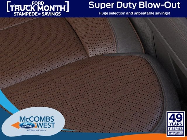 FX4 OFF-ROAD PACKAGE -inc: Hill Descent Control, Off-Road Specifically Tuned Shock Absorbers, front/rear, Transfer Case & Fuel Tank Skid Plates, Unique FX4 Off-Road Box Decal, ENGINE: 6.7L HIGH OUTPUT POWER STROKE V8 DIESEL -inc: Turbo diesel B20, manual push-button engine-exhaust braking and Operator Commanded Regeneration (OCR), 48 Gallon Fuel Tank, 250 Amp Alternator, GVWR: 12,400 lb Payload Package, 3.31 Axle Ratio, Dual 68 AH AGM 750 CCA Batteries, CHROME PACKAGE -inc: Unique Chrome Mirror Caps, Chrome Front & Rear Bumpers, Wheels: 20" Chrome PVD Aluminum, unique center ornament, Chrome Door Handles, Monochromatic Paint, Chrome Exhaust Tip, 5TH WHEEL/GOOSENECK HITCH PREP PACKAGE -inc: 5 pickup bed attachment points w/plugs, 1 frame under-bed cross member and 1 integrated 7-pin connector on driver's side pickup bed wall, 5th wheel hitch compatibility: the 5th Wheel/Gooseneck Prep Package (53W) is compatible w/the factory orderable 5th Wheel Hitch Kits (15K and 15L) and dealer-installed Ford accessories 5th Wheel Hitch Kit by Reese - part #BC3Z-19D520-A (8ft box only), The prep package is also compatible w/Reese Signature Series 5th wheel hitch kits updated w/a new Leg Service Kit - part #BC3Z-A00A25-A (8ft box only), The 5th Wheel Hitch Kit (15K), 5th Wheel Hitch Kit (15L) and dealer-installed Ford accessories 5th Wheel Hitch Kit by Reese - part #BC3Z-19D520-A is not released to the short box (6.75ft box), Note: the short pickup box provides less clearance between the cab and 5th wheel trailer compared to long box pickups, The receiver centerline of the hitch should be mounted at least 2" forward from the rear-axle of the , TIRES: LT275/65RX20E BSW A/T (4) -inc: Spare may not be the same as road tire (STD), SECURICODE KEYLESS ENTRY KEYPAD (DRIVER'S SIDE) -inc: Integrated into the B-pillar, ORDER CODE 710A -inc: 410 Amp Dual Alternators, 250 Amp + 160 Amp, LED ROOF CLEARANCE LIGHTS, JAVA, UNIQUE KING RANCH LEATHER 40/CONSOLE/40 SEATS -inc: multi-contour Kingsville Antique Affect leather seats, dual integrated cupholders in armrest, 2 outboard head restraints, heated/ventilated seating, 8-way power driver and passenger seat (4-way power-adjustable track, 2-way power recline and 2-way power lumbar), 4-way adjustable driver/passenger headrests and easy entry driver's seat w/memory, FRONT LICENSE PLATE BRACKET -inc: Standard in states requiring 2 license plates and optional to all others.