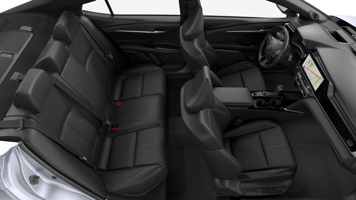 - Leather-trimmed front seats with seatback pockets; 8-way power-adjustable front driver's seat with power lumbar support; 8-way power-adjustable passenger front seat