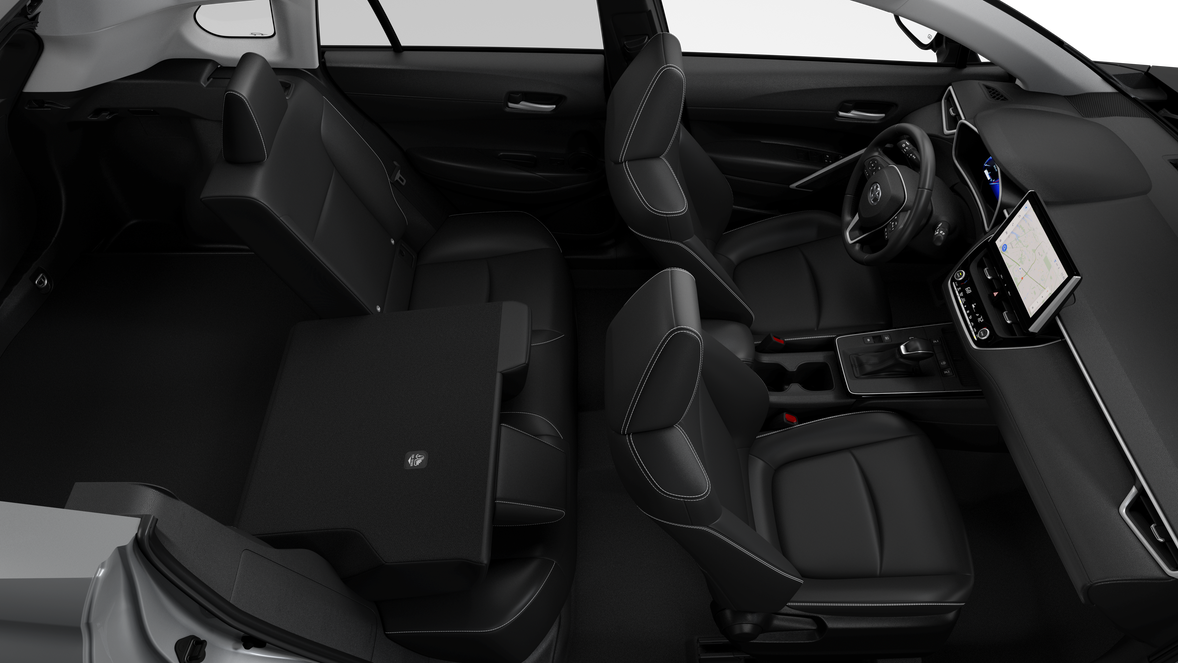 - Rear fold-down center armrest with two cup holders