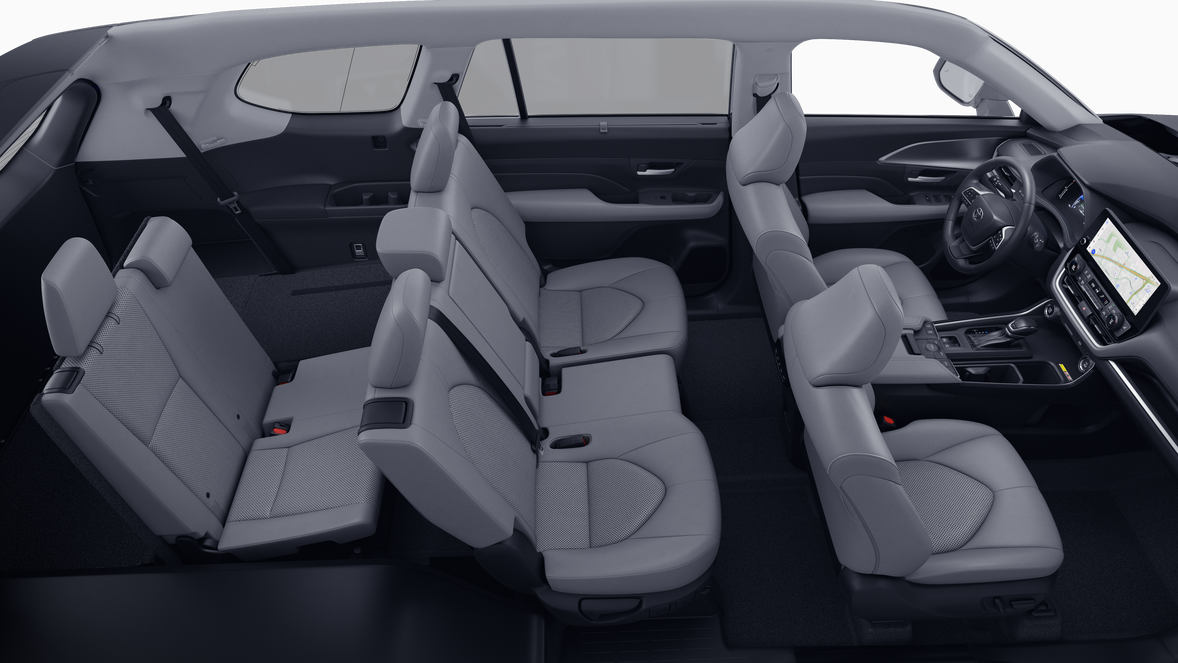 - 7-passenger seating with second-row fold-down captain's chairs and fold-down inboard armrests, adjustable headrests and two cup holders mounted on the floor; and 60/40 split, fold-down third-row seats with sliding headrests and recline function