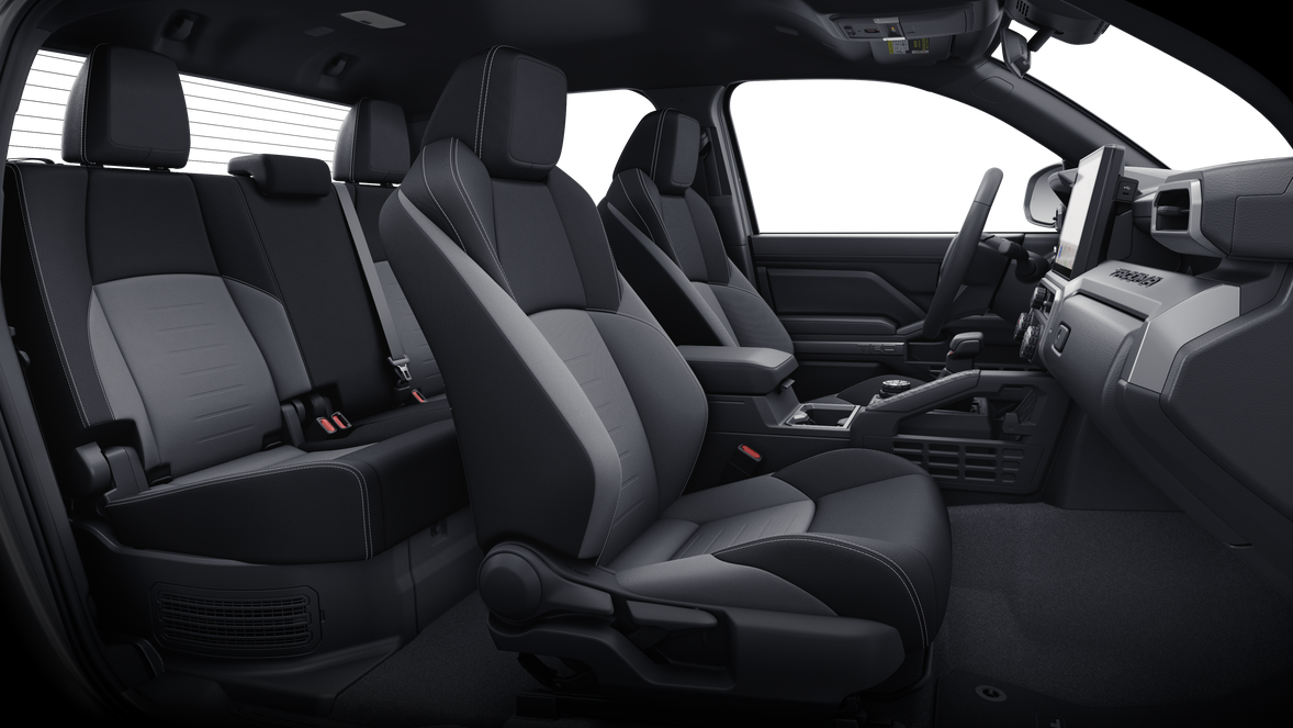 - Fabric-trimmed seats; 6-way manually adjustable driver and front passenger seats with 2-way power-adjustable lumbar support on driver's seat only