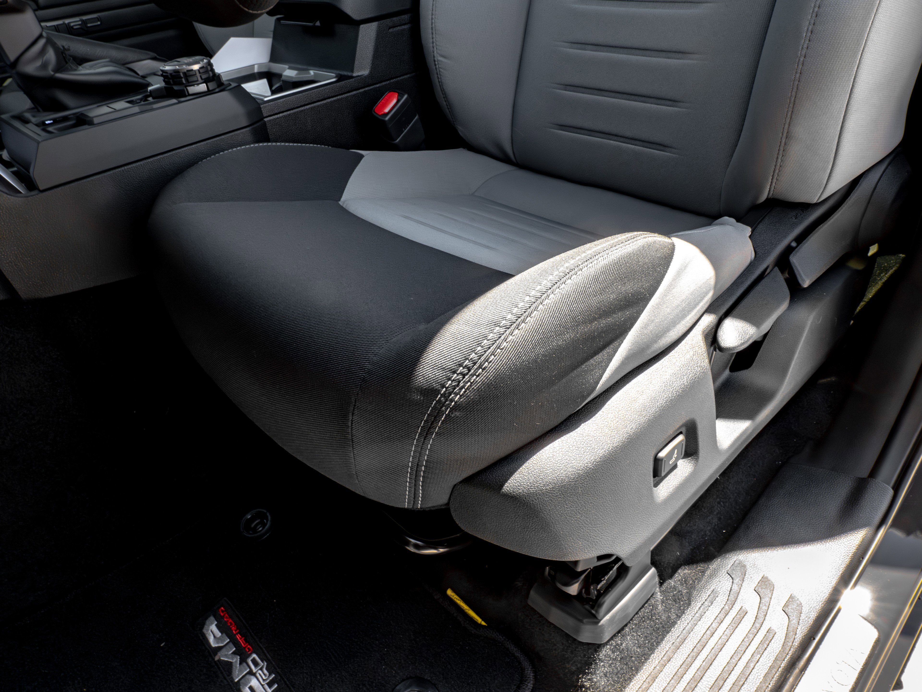 - Fabric-trimmed seats; 6-way manually adjustable driver and front passenger seats with 2-way power-adjustable lumbar support on driver's seat only