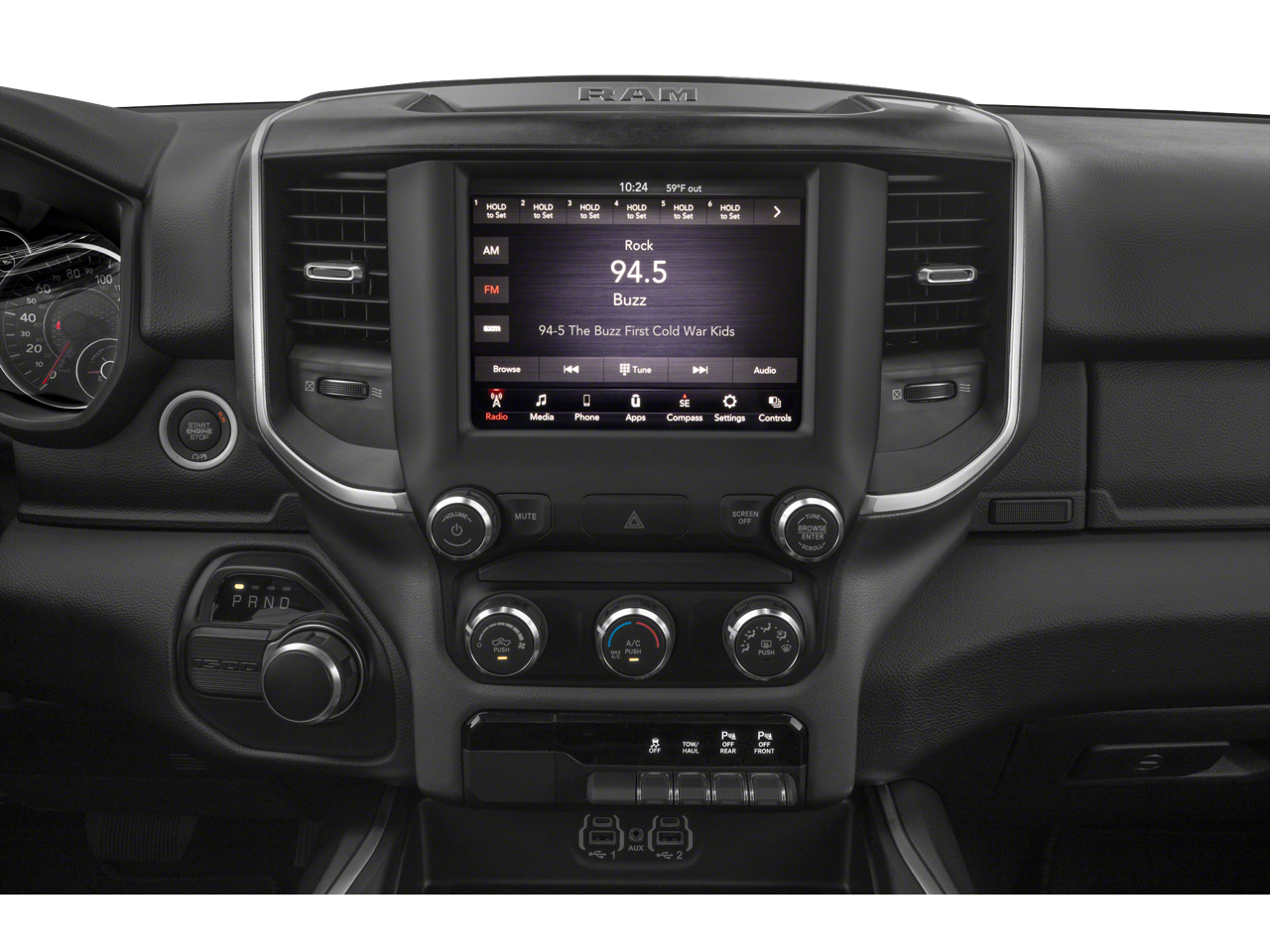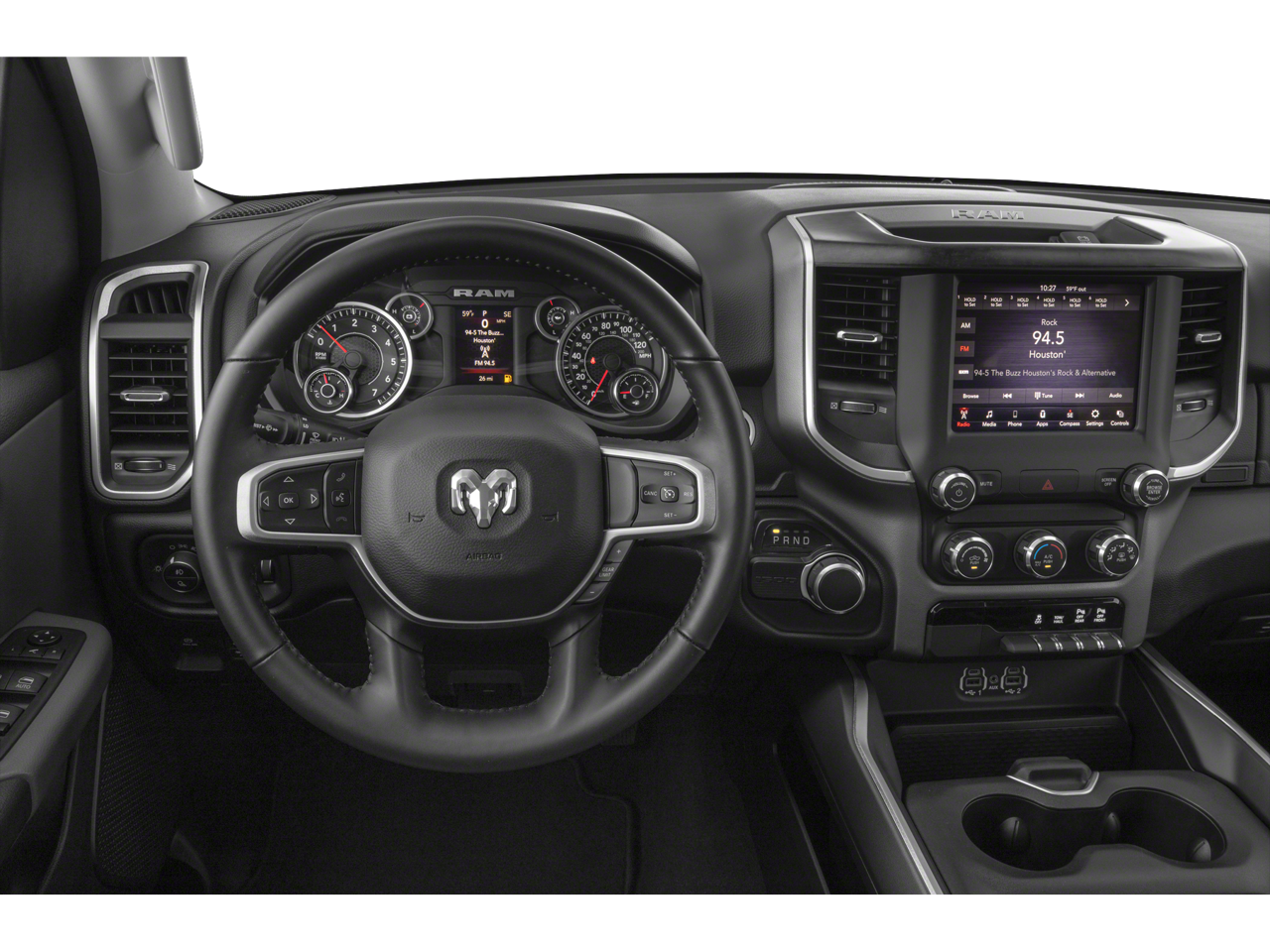 - BIG HORN LEVEL 1 EQUIPMENT GROUP -inc: Radio: Uconnect 4 w/8.4 Display SiriusXM Satellite Radio Rear Window Defroster Rear View Auto Dim Mirror Power Adjustable Pedals Rear Power Sliding Window Rear Dome w/On/Off Switch Lamp Glove Box Lamp Power 4-Way Driver Lumbar Adjust Power 8-Way Driver Seat Universal Garage Door Opener Cluster 3.5 TFT Color Display Foam Bottle Insert (Door Trim Panel) 2nd Row In Floor Storage Bins Class IV Receiver Hitch Black Premium Power Mirrors Sun Visors w/Illuminated Vanity Mirrors Big Horn IP Badge