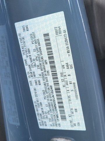 FRONT LICENSE PLATE BRACKET, EQUIPMENT GROUP 300A, ENGINE: 1.5L ECOBOOST, EBONY, VINYL/CLOTH FRONT SPORT CONTOUR BUCKET SEATS, Wing Spoiler, Wheels: 18" Rock Metallic Painted Aluminum, Vinyl/Cloth Front Sport Contour Bucket Seats -inc: 8-way power driver seat (includes fore/aft, up/down, power lumbar and power recline), 4-way manual front passenger seat (fore/aft w/manual recline) and red stitching, Valet Function, Trip Computer, Transmission: 8-Speed Automatic.